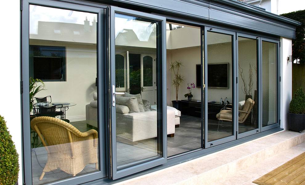 Для расширения пространства удобно установить складные или раздвижные двери. Чтобы было много света, для экономии освещения в дневное время нужно панорамное остекление от пола до верха. А для безрамных конструкций выбирают с количеством створок для герметичности – чем их меньше, тем она выше.