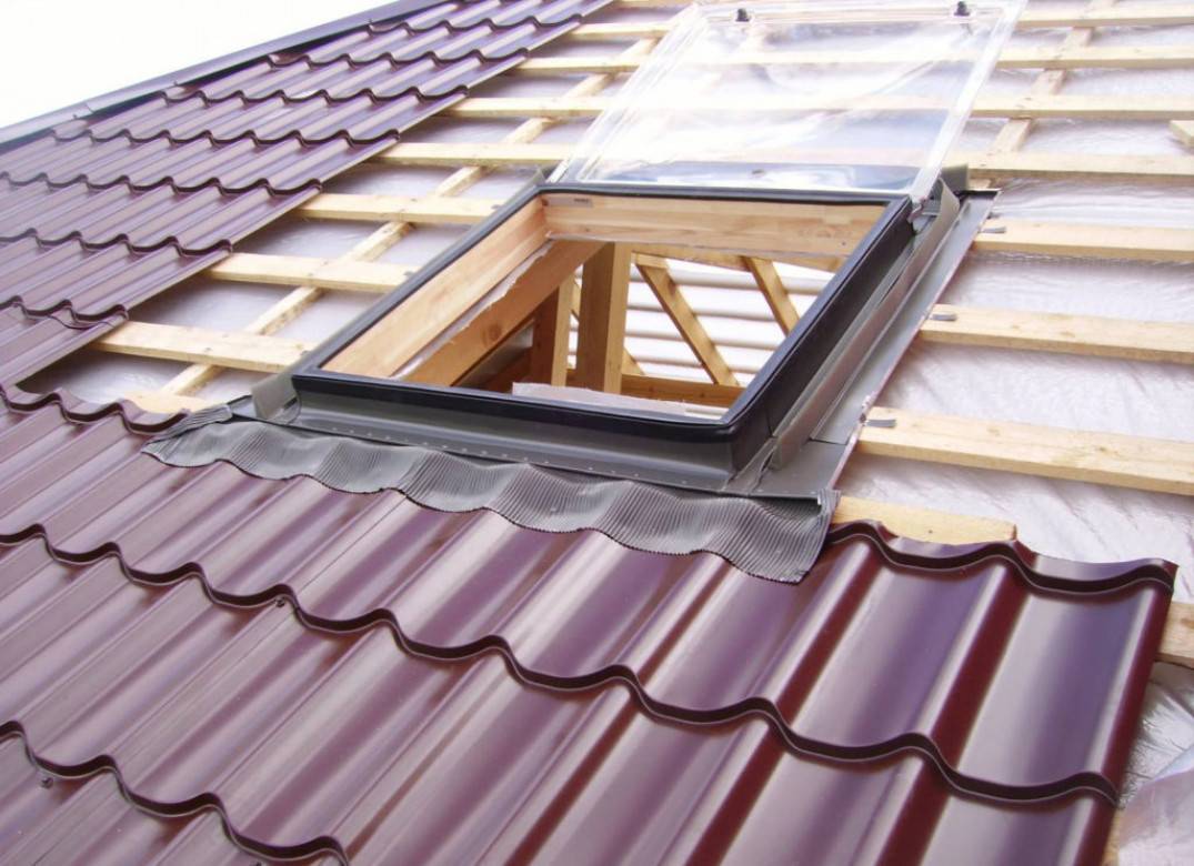 Отдельно следует отметить работу с кровельным материалом. Монтаж мансардных окон в металлочерепицу производится аналогично, равно как и в случае с профнастилом или листовым железом. Если же речь идет о мансардных окнах в фальцевой кровле или подобных материалов, то обшивку вначале потребуется разобрать.