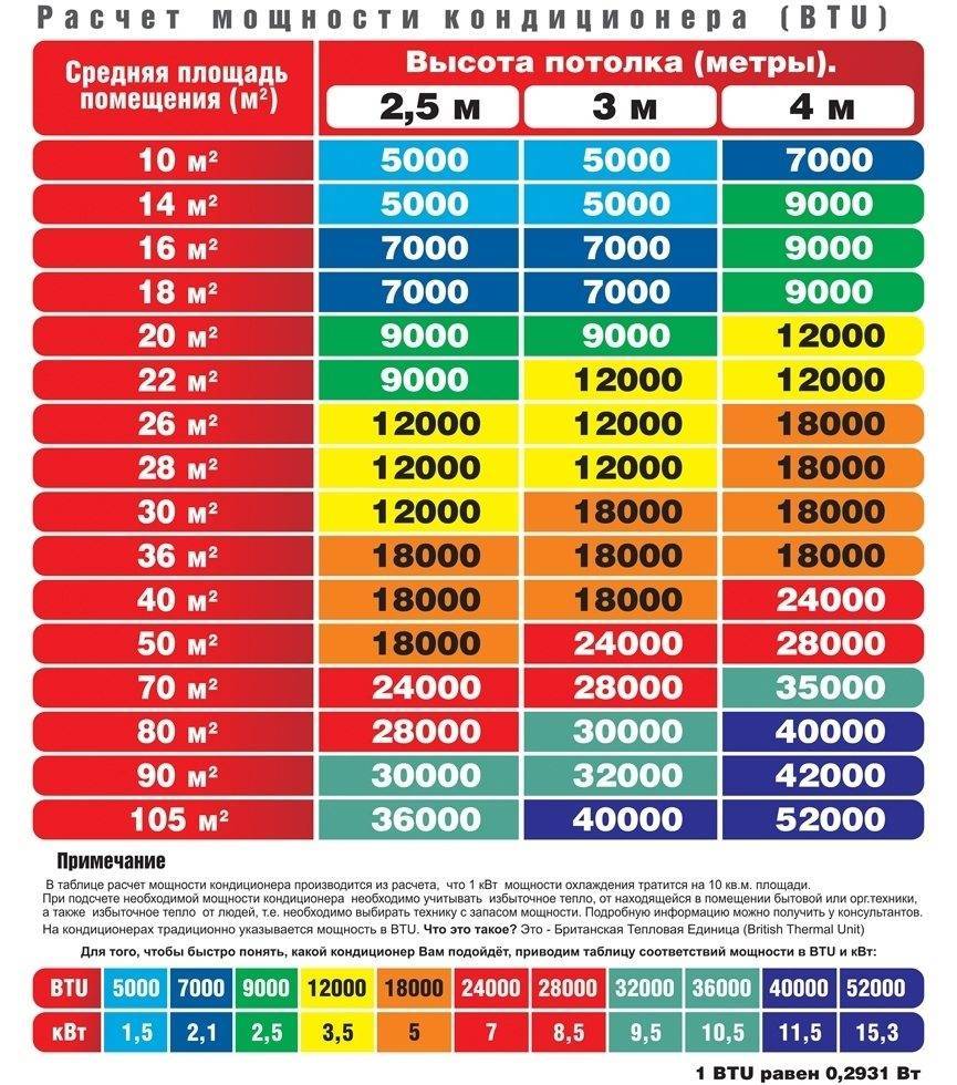 Следовательно, кондиционер должен быть мощностью от 3, 15 до 3,80 квт. Все данные выводятся в квт час.Многие пользователи не хотят рисковать, самостоятельно высчитывая параметры мощности. Даже при самом тщательном отношении к делу, можно допустить ошибку и приобрести маломощный или, наоборот, очень мощный кондиционер. И в том, и в другом случае пользователь проигрывает. Поэтому, выбор и установку сплит-системы в таком случае доверяют профессионалам. Какие бывают кондиционеры потребления энергии, подскажут специально обученные мастера.