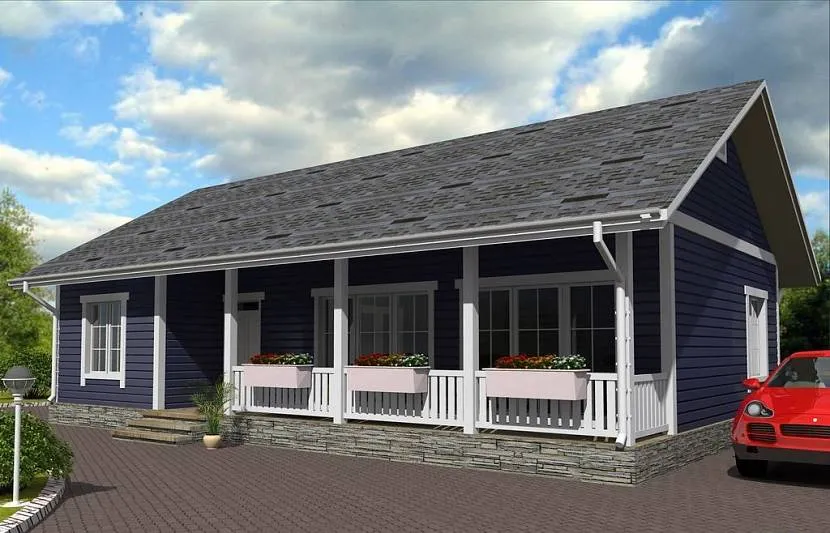 Одноэтажный дом с открытой террасой и фасадом из планкенаИсточник yandex.uz