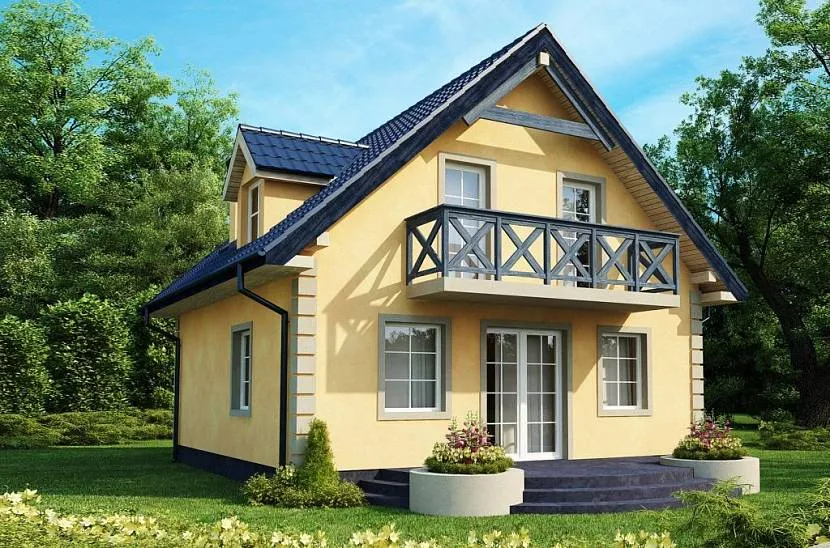Одноэтажный каркасный дом с мансардой и балкономИсточник iw.aviarydecor.com