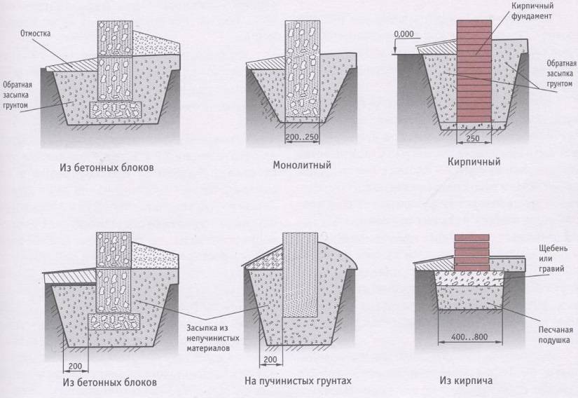 При этом в отношении разных типов грунтов применяются такие варианты фундамента: