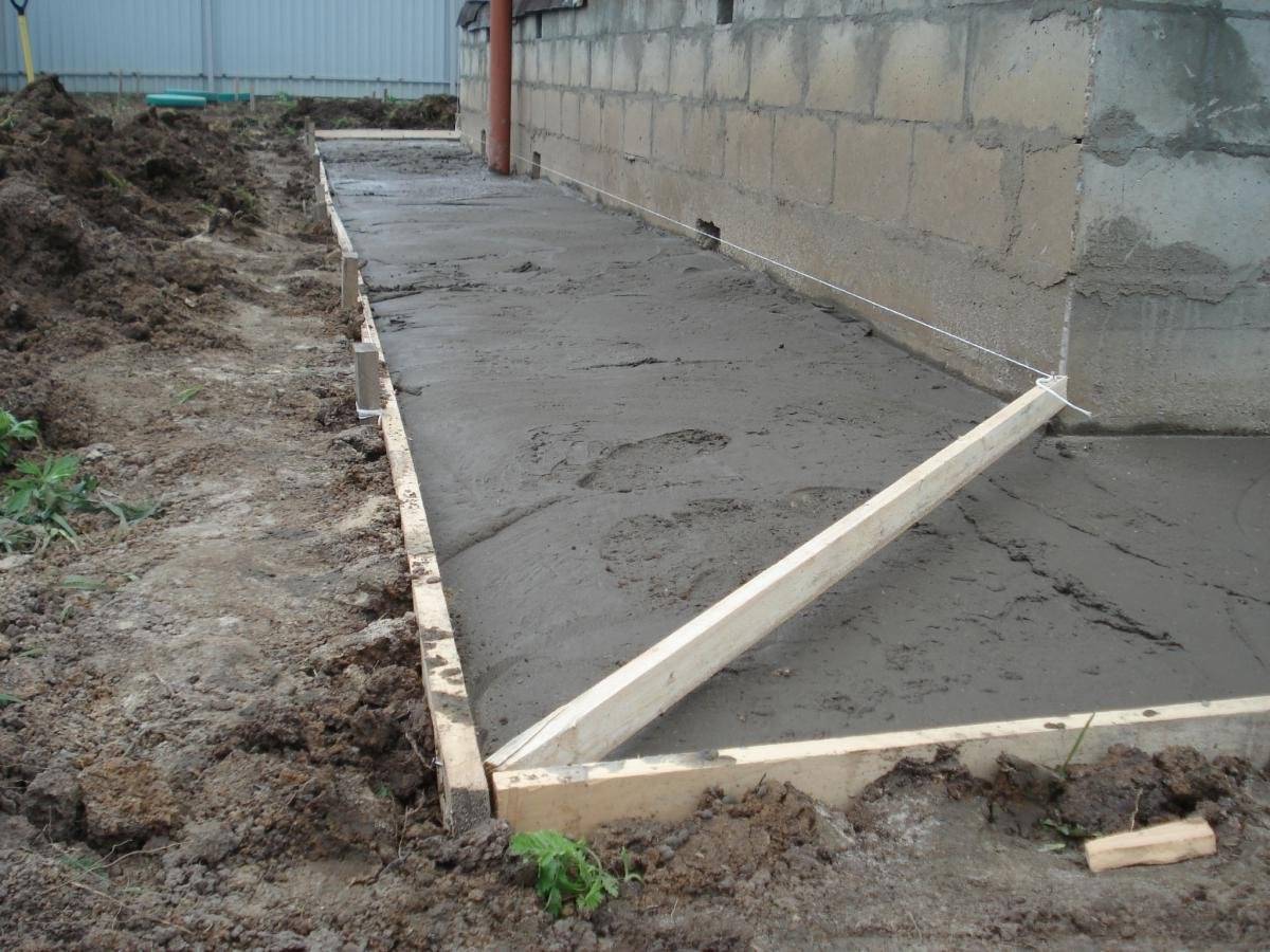 Перед тем как залить бетон под наклоном нужно рассмотреть подробную технологию проведения работ. Нужно провести такие манипуляции: