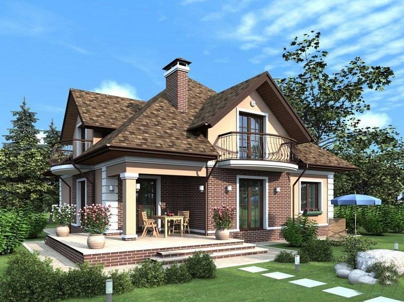 Керамика лидирует среди других материалов по долговечности и легкости воплощения архитектурных идей. Как пример, проект кирпичного дома с мансардой до 150 кв. м.