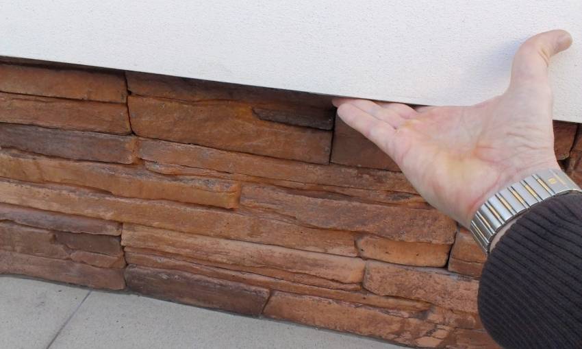 Отделка цоколя искусственным камнем с применением плиточного клея