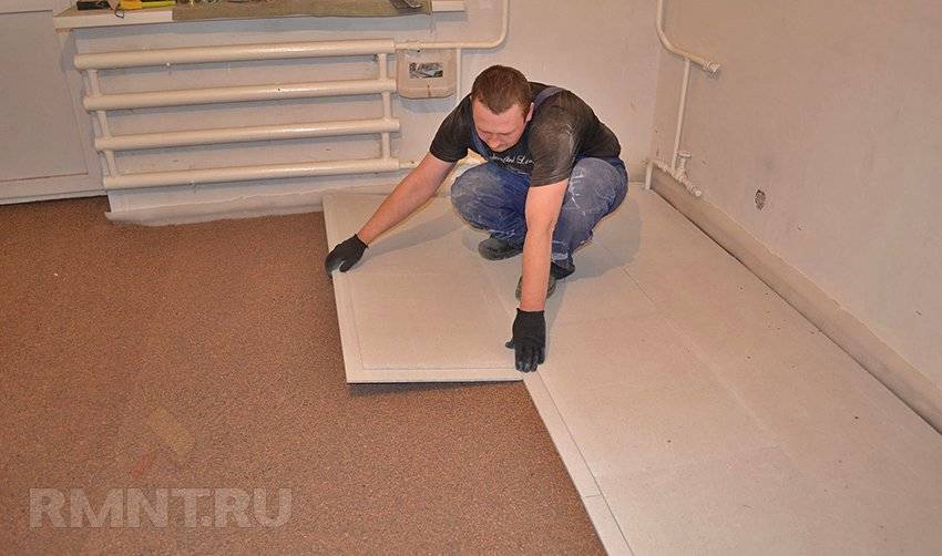 Теперь можно приступать к настилке слоя звукоизоляции и раскладке теплоизоляционных плит
