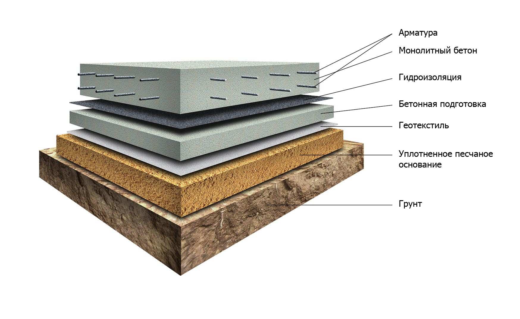Толщина плиты фундамента под газобетонный дом. Схема с указанием толщины всех слоев плитного фундамента.