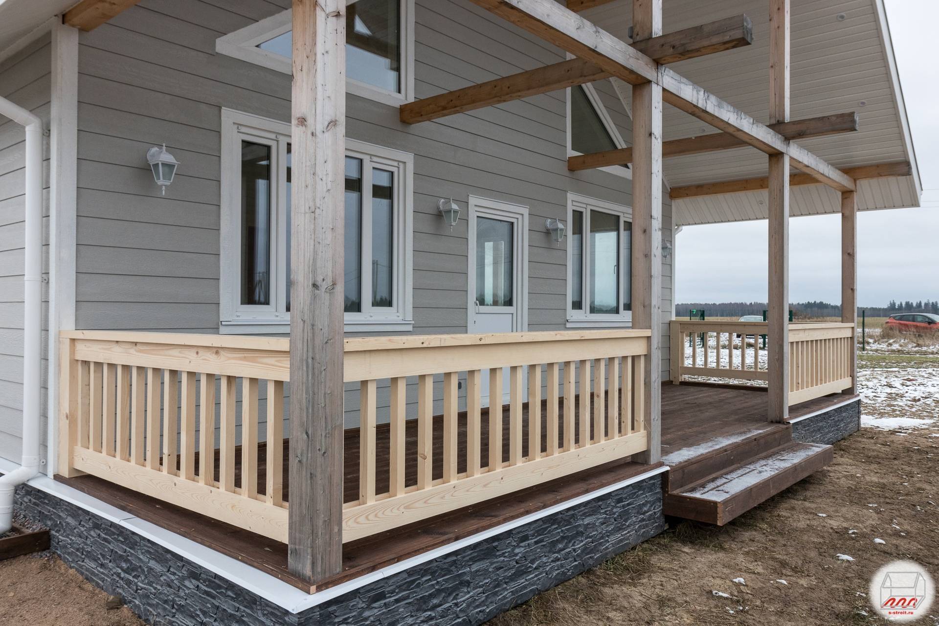 Ограждение открытой веранды с перилами лучше делать из дерева.
