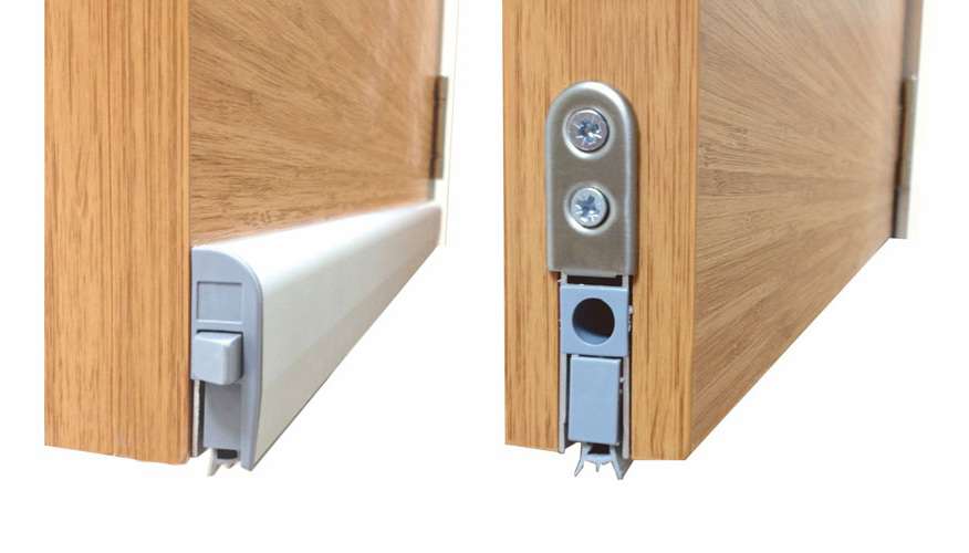 - Декоративный элемент изолирует звук, исходящий из-под пола при открытии двери. Для лучшей шумоизоляции дверную коробку устанавливают с резиновыми уплотнителями.