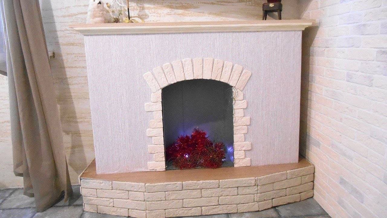 Одними из самых популярных каминов являются угловые модели, позволяющие значительно экономить место в квартире. Мы с легкостью можем сделать подобный вариант из той же коробки из под телевизора.