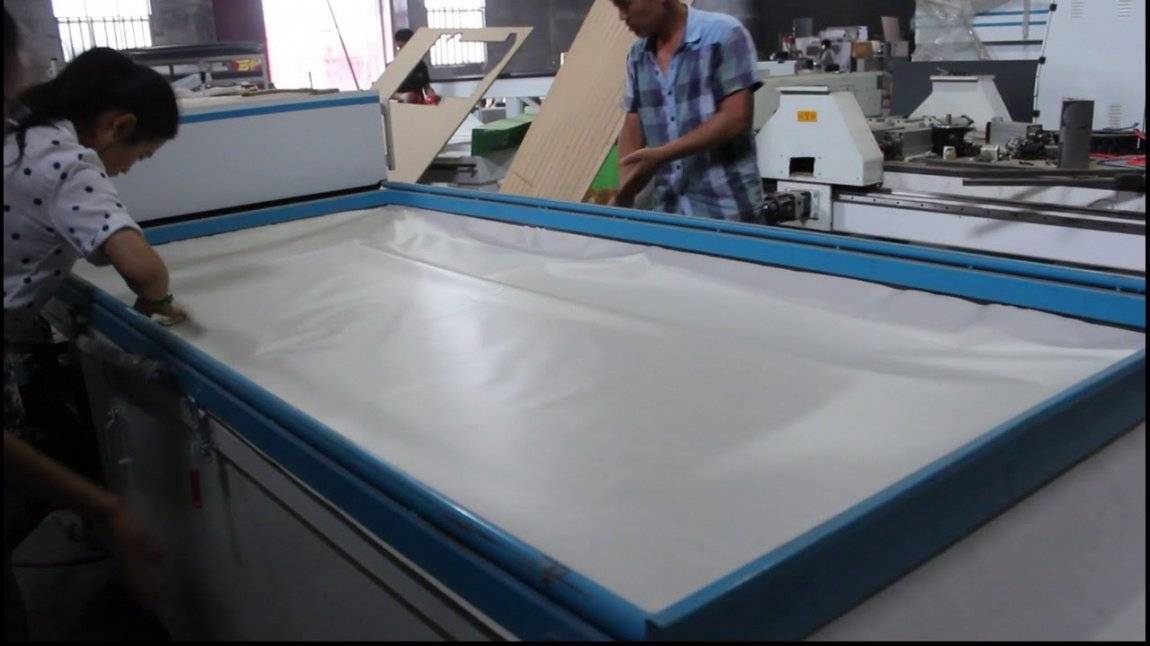 На дверную поверхность сначала наносится специальный синтетический клей, сверху на него под определенным давлением клеится поливинилхлоридная пленка. После этого происходит процесс склеивания и пленка плотно прилегает к дверному полотну.