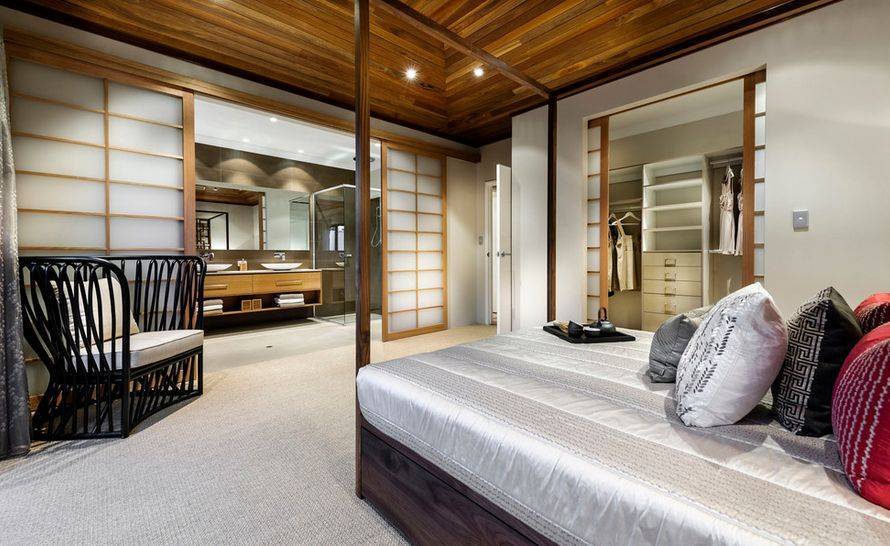 Рисовую бумагу на каркасе из тонких деревянных планок применяют для изготовления раздвижных дверей и перегородок. Они сочетаются с дизайном в восточном стиле и хорошо зонируют большое помещение.