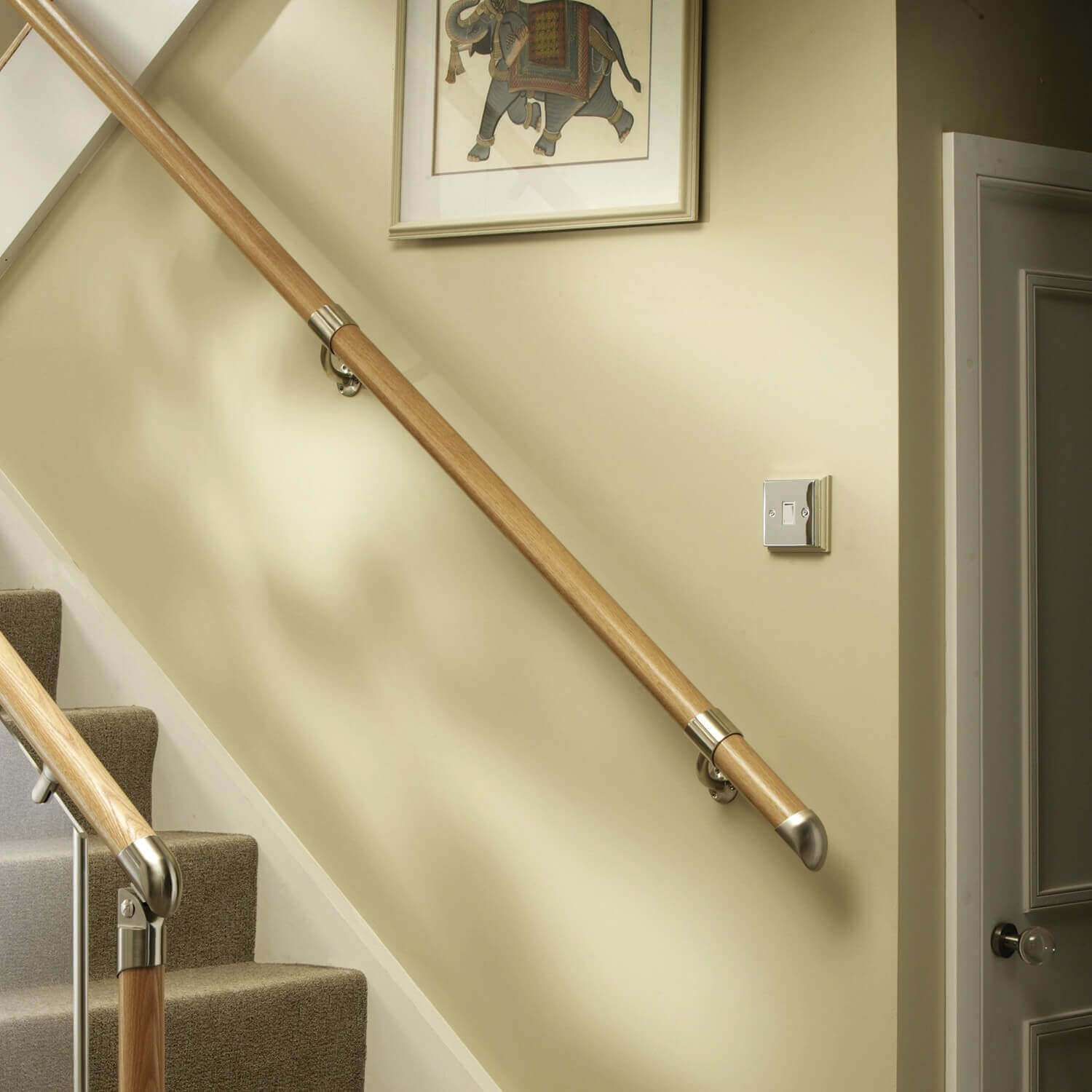 - Высота пристенных поручней легко регулируется, так как крепление в стене не зависит от других элементов лестницы, в отличие от ограждений с балясинами.