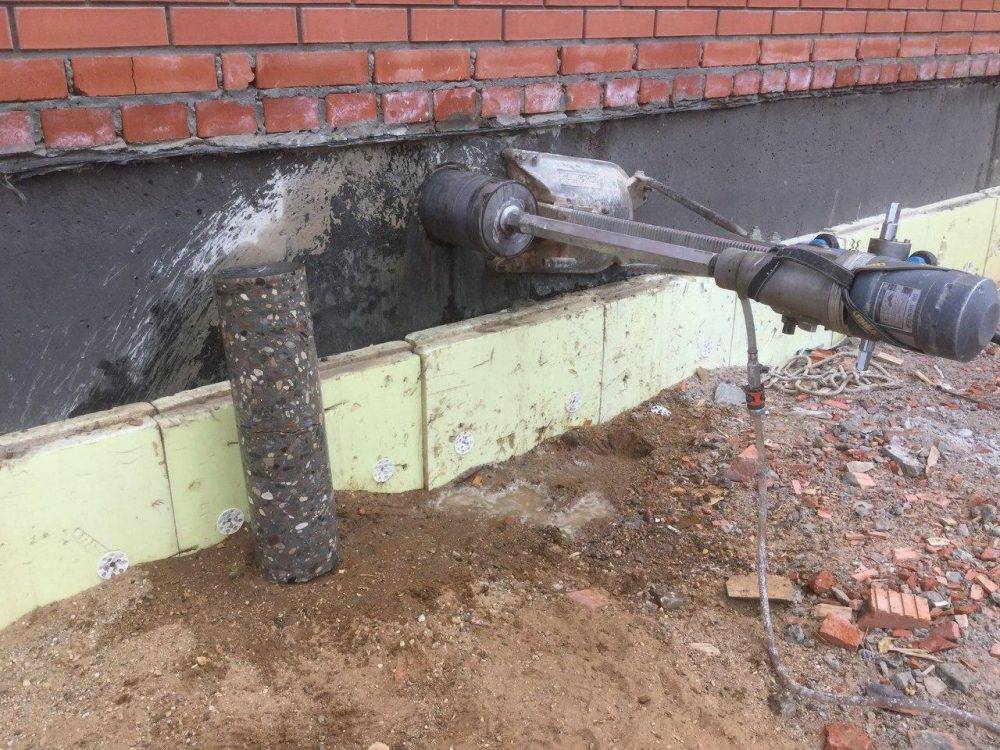 - Увеличить размеры уже имеющихся или насверлить новые. Сверлить монолитный фундамент — непростая задача. Делают это или при помощи коронки подходящего размера. Если коронки нет, можно взять длинное сверло большого диаметра, высверливая им много мелких отверстий по периметру отдушины. Потом сверлят оставшиеся промежутки, а неровная поверхность затем или шлифуется, или просто закрывается решеткой. Еще один способ — заказать алмазное бурение. При этом используется специальное оборудование, сверлятся отверстия намного мягче, без ударных нагрузок. Алмазное бурение в цоколе здания