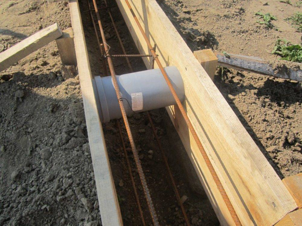- Но есть и более простой способ: берется пластиковая канализационная труба диаметром 110 мм, и от нее отрезается кусок, соответствующий толщине фундамента. В итоге получается идеально ровное отверстие круглой формы.