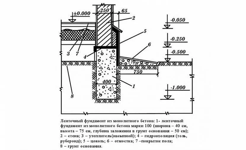Ленточный фундамент в разрезеИсточник ustanovkasvai.ru