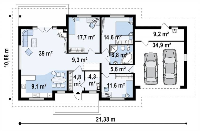 Проект дома из пеноблоков с гаражом на два автомобиля