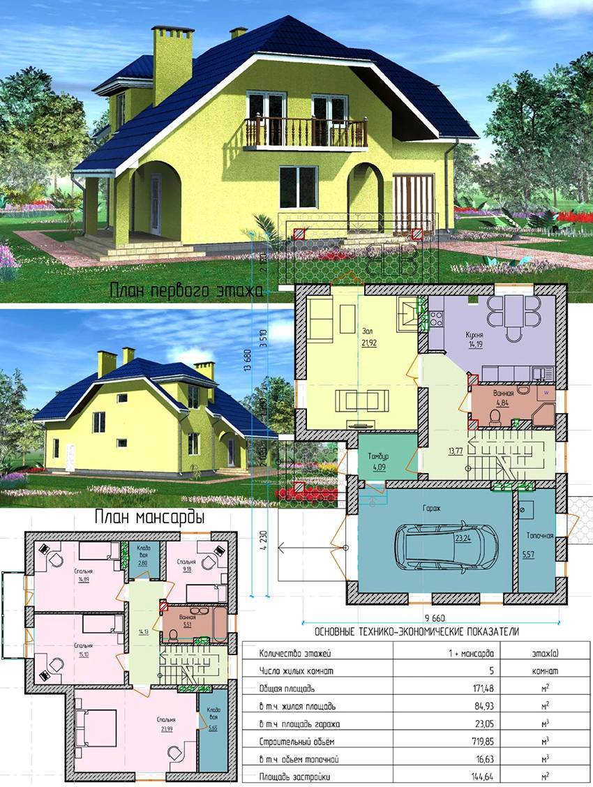 Выбор материала для возведения дома с мансардой и гаражом: фото примеры