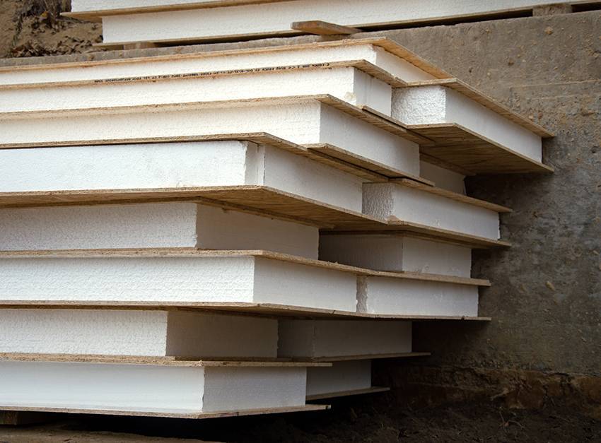 Наиболее популярный материал – пенопласт. Он поставляется в плитах, благодаря чему обеспечивается его удобная транспортировка и монтаж. Материал характеризуется легким весом, хорошими теплоизоляционными свойствами, низкой стоимостью. Среди недостатков можно выделить легкость воспламенения и большую вероятность раздробления изделия при монтаже.