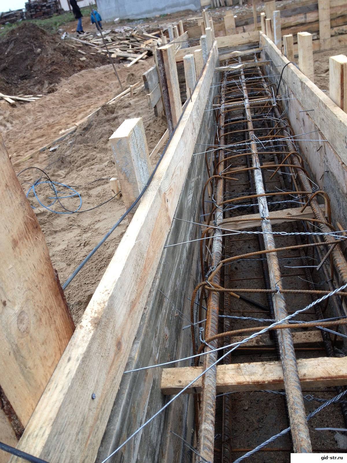 - Кабель располагается в основании бетонной конструкции прямо перед заливкой раствора;
