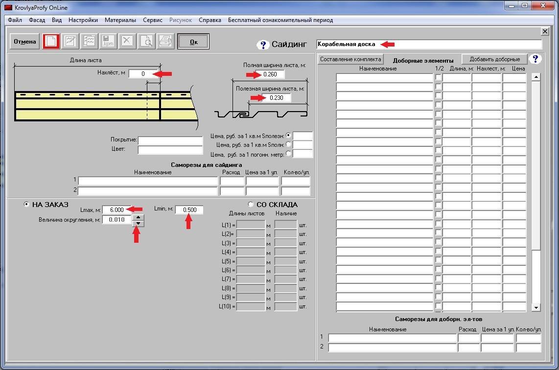 Чтобы узнать сколько потребуется материала для обшивки дома, следует заполнить все поля программы.