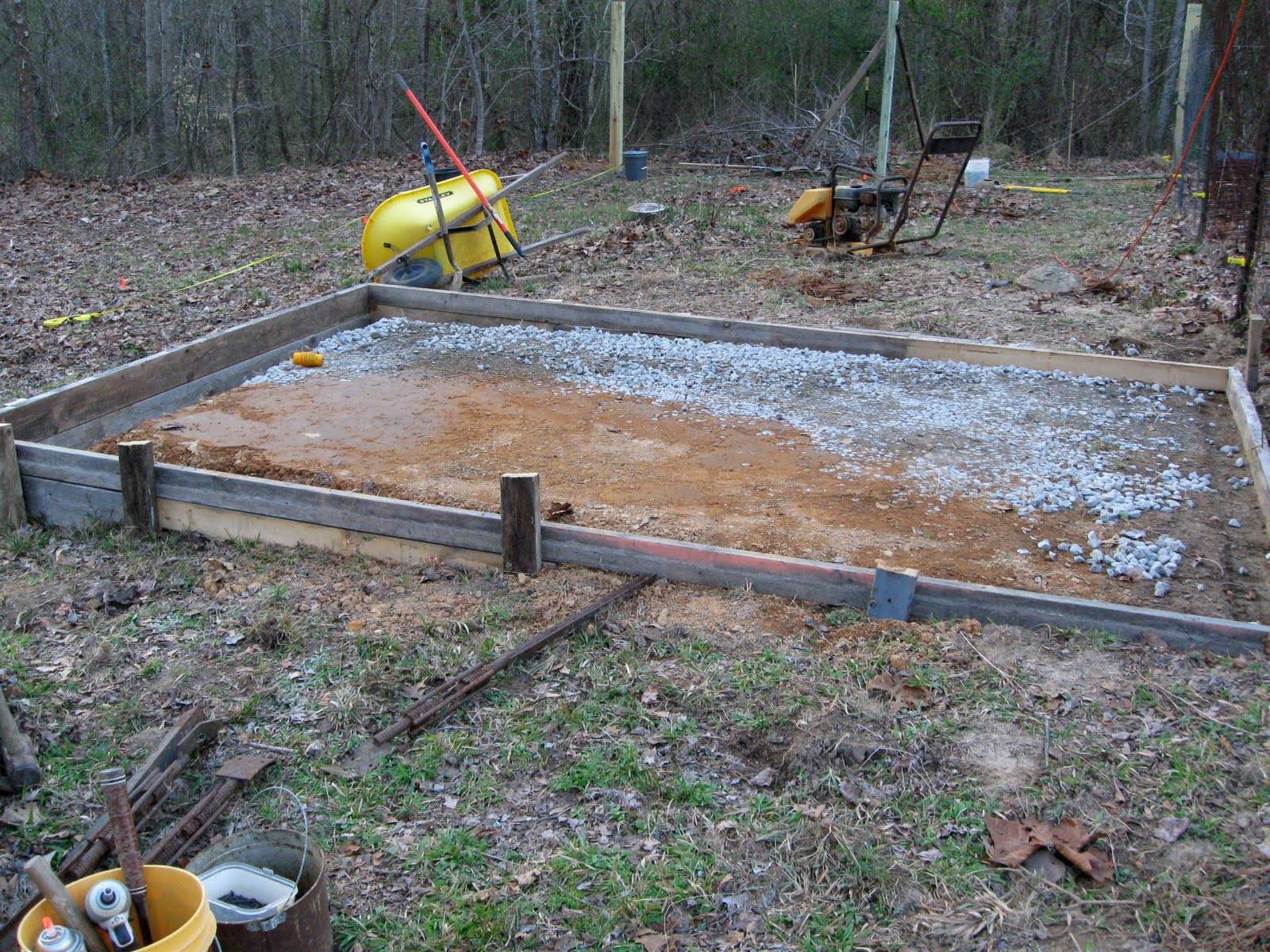 - Уложите гравийную подушку и утрамбуйте ее. Следите, чтобы щебень был распределен равномерно и строго горизонтально, лучше использовать для этого гидроуровень.