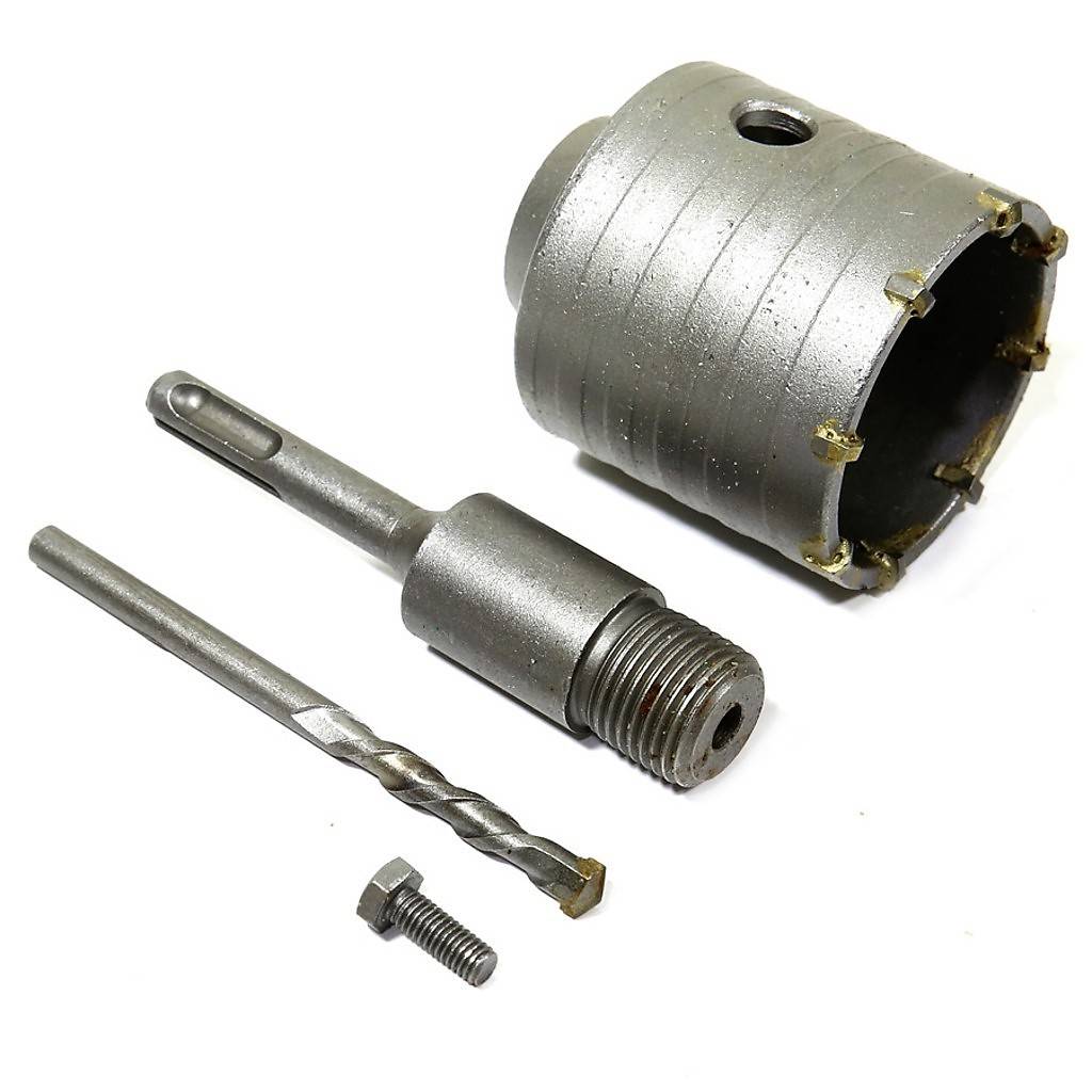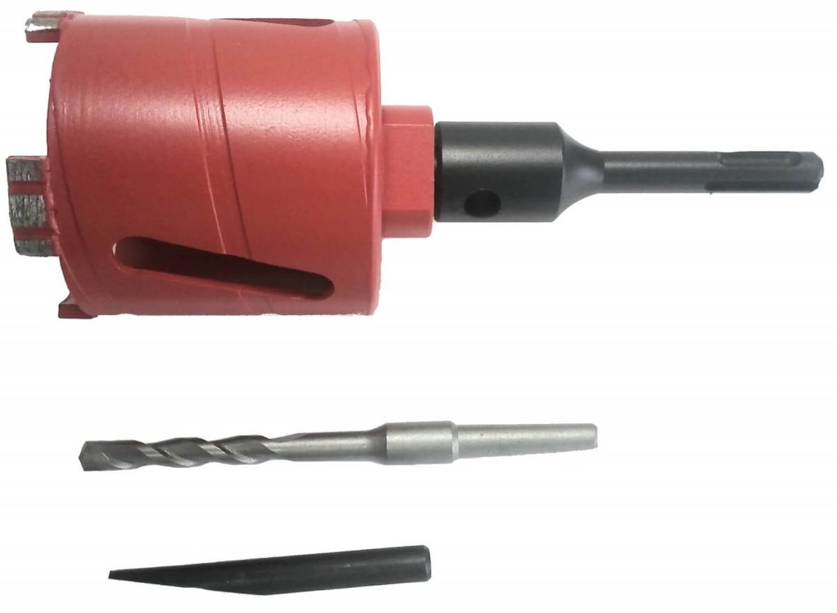 Коронка по бетону – это узкоспециализированная насадка для перфоратора или дрели, позволяющая сделать отверстие или углубление диаметром от 40 мм до 120 мм в:
