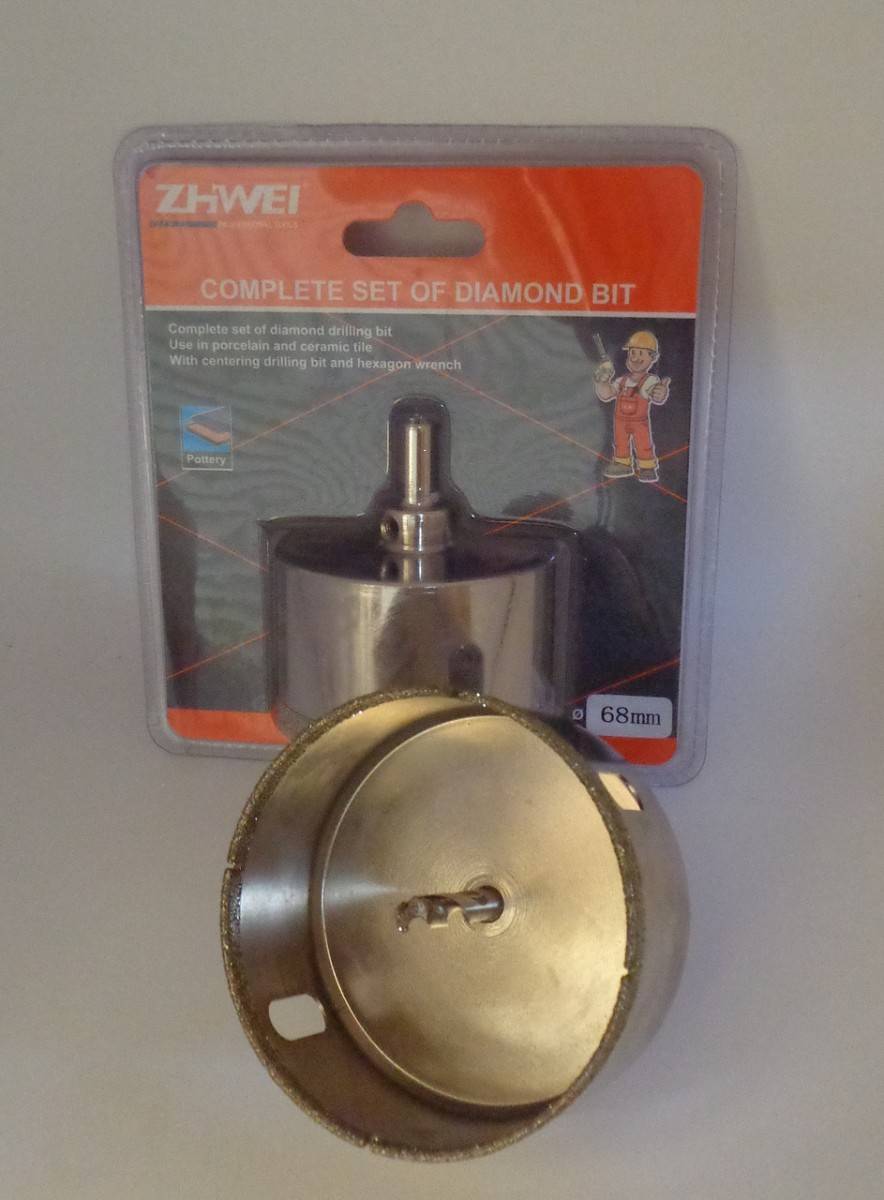 Моей первой коронкой была обычная твердосплавная 68 мм. Коронка была бы не плохая, если бы зубы оставались хотя бы целыми после 5-10 подрозетников в бетоне. Но эта коронка является ударной для сухого реза, а это означает, что зубы будут вылетать быстрее. Любой камушек в бетоне может оставить её без зуба, не говоря уже про арматуру.