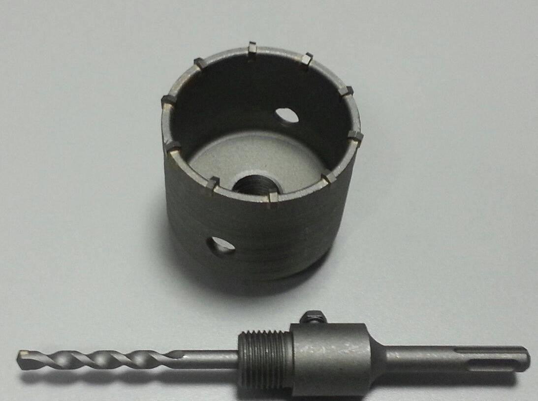 Оптимальный вариант для установки электрокоробок. Аккуратность отверстия позволяет брать гильзу «в размер» и использовать минимум раствора. Также популярны диаметры 72 и 82 мм.