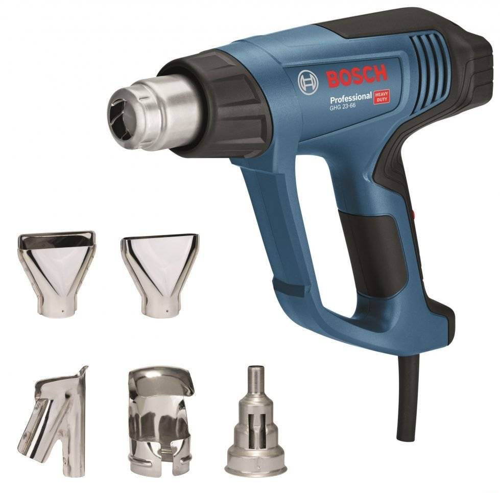 Мощный технический термофен 2,3 кВт поддерживает четыре варианта настройки скорости и температуры — до 500 л в минуту и 660 °С соответственно. Комплектуется двумя насадками на сопла на 75 и 50 мм. Предусмотрен жидкокристаллический дисплей, также производитель предлагает кейс для хранения и перевозки.