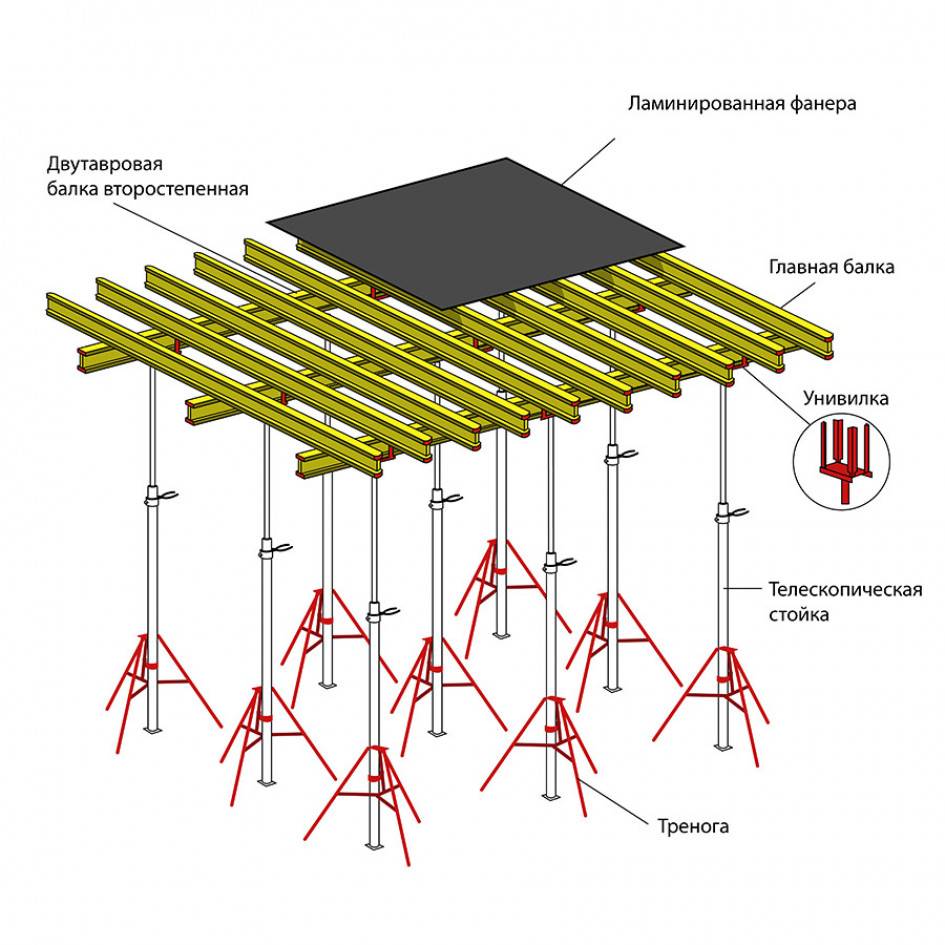Следует немного рассказать про опоры, используемые для установки опалубки перекрытия: