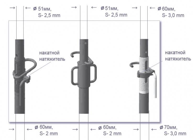 Расстояние между точками упора, исключающими расползание опалубки под нагрузкой вышележащих конструкций, должно быть максимум 1 м. Двусторонняя установка упорных узлов нужна в углах, где нагрузка наиболее велика. Конус — еще один тип защитных компонентов, которыми закрывают свободные концы трубок. А при обустройстве перекрытий часто нужна телескопическая стойка. У них бывает открытая либо закрытая нарезка. В состав стойки входит пара труб, изготавливаемых из стали либо алюминия. Закрытый тип нарезок означает прикрытие внешним цилиндром (кожухом). Длина стоек равна минимум 1,7 м, максимум же 4,5 м.