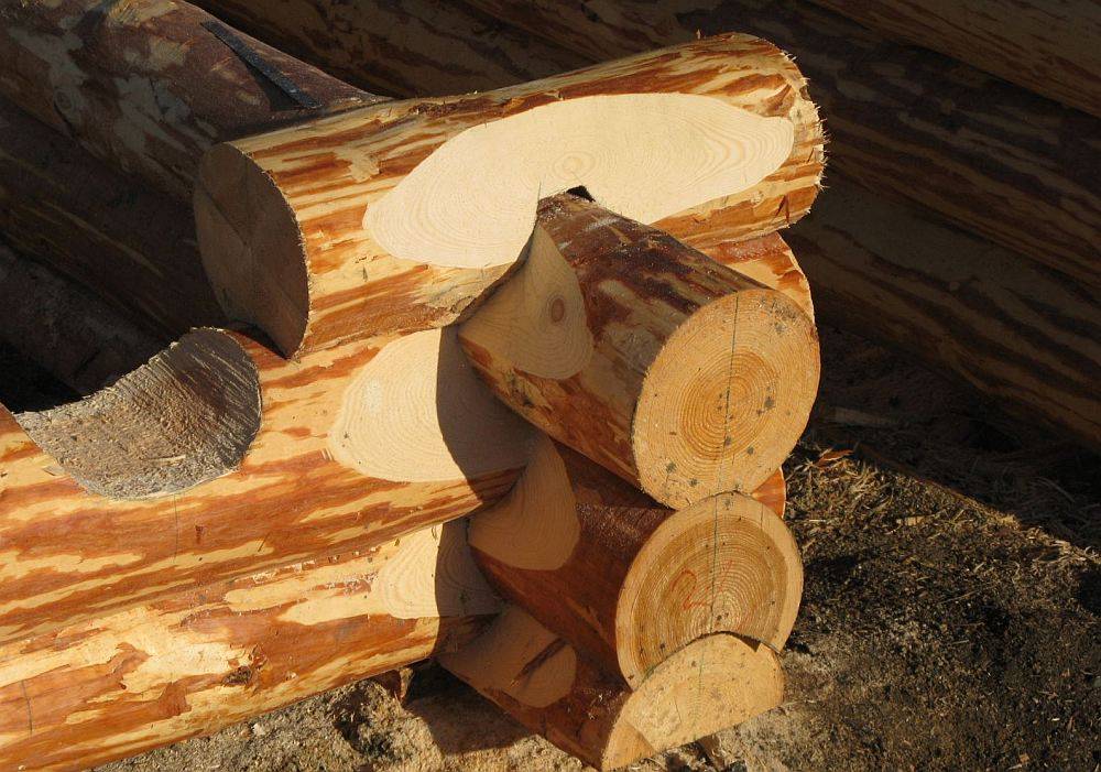 формирование компенсационного пропила. Отметим, что пропил есть не на всех бревнах, и делается чаще по заказу покупателя;