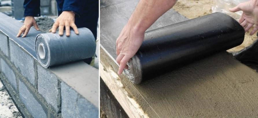С применением рулонных гидроизоляционных материалов, таких как пергамин, рубероид и стеклоизол. Они приклеиваются в несколько слоев к поверхности основания как с использованием мастики, так и с применением специального клейкого слоя.