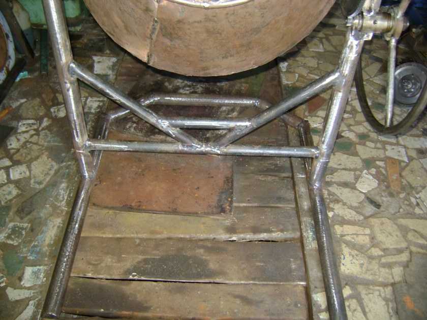 Именно с данного момента начинают строительство любой модели бетономешалки. Каркас выполняют из металлических труб, уголков или профильных труб. Для крепления используют сварку.