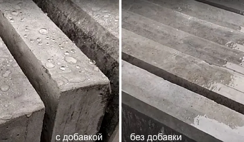 Чтобы увеличить гидрофобность уже застывшего раствора, в состав добавляют соли металлов (железо хлорное, кальция нитрат). Водонепроницаемые свойства усиливают силиконы и соли щелочные. В роли универсальной пластифицирующей добавки профессионалы используют виды на основе поликарбоксилатов.