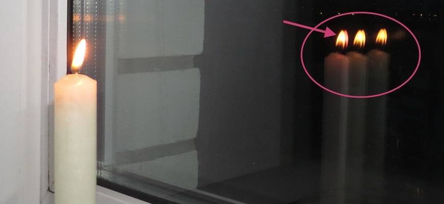 - после закрытия стеклопакета поднести к нему горящую свечу, но проверять колебание пламени нужно не в одном углу, как при проверке уплотнителей, а по всему периметру.
