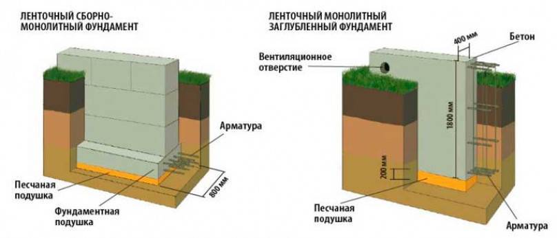 Главный критерий, по которому различаются основания, – глубина залегания. Она зависит от массивности постройки и типа почвы. Также значение имеют конструктивные особенности ленты.