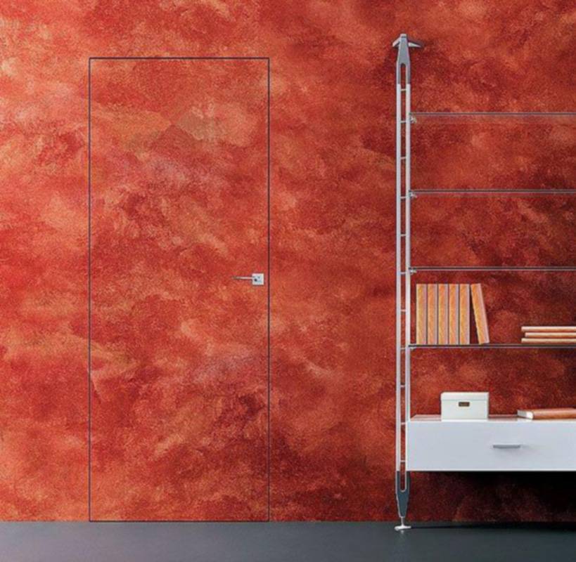 Пятое достоинство. Вариации отделки. Двери скрытого монтажа можно выполнять не только в стандартном дверном исполнении, но и покрывать декоративной штукатуркой или обклеивать обоями. Это могут быть двери под покраску или в конце концов под роспись. На самом деле количество используемых материалов практически неограниченно. Вы можете использовать всё, что вообще используется при отделке.