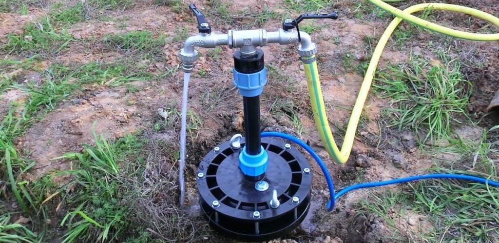 - Мелкого заглубления, т. е. до 3 м, так что поступление жидкости происходит за счет работы ручного насоса. Они обеспечивают воду для сельхознужд, например, для полива участка.
