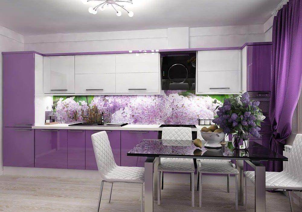 Фиолетовый считается противоречивым цветом. Поэтому использовать его в дизайне кухни непросто. Придётся потратить время на подбор грамотных цветовых сочетаний, подходящей мебели, аксессуаров.