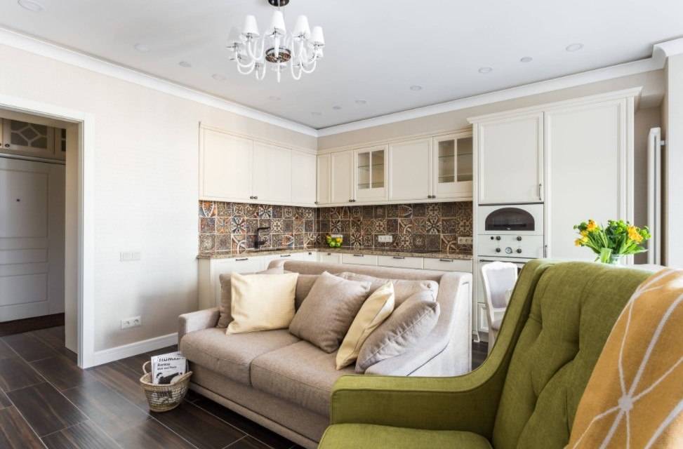 Гостиная с кухней 35 м².
