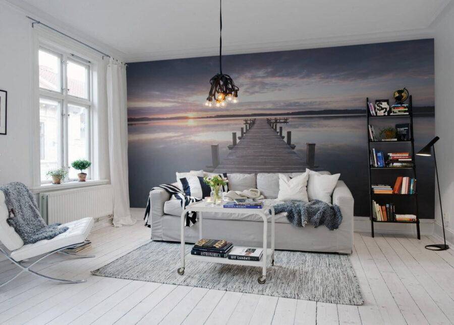 Далее поговорим о том, как можно наклеить фотообои в гостиной, и рассмотрим несколько интересных идей по их поклейке.