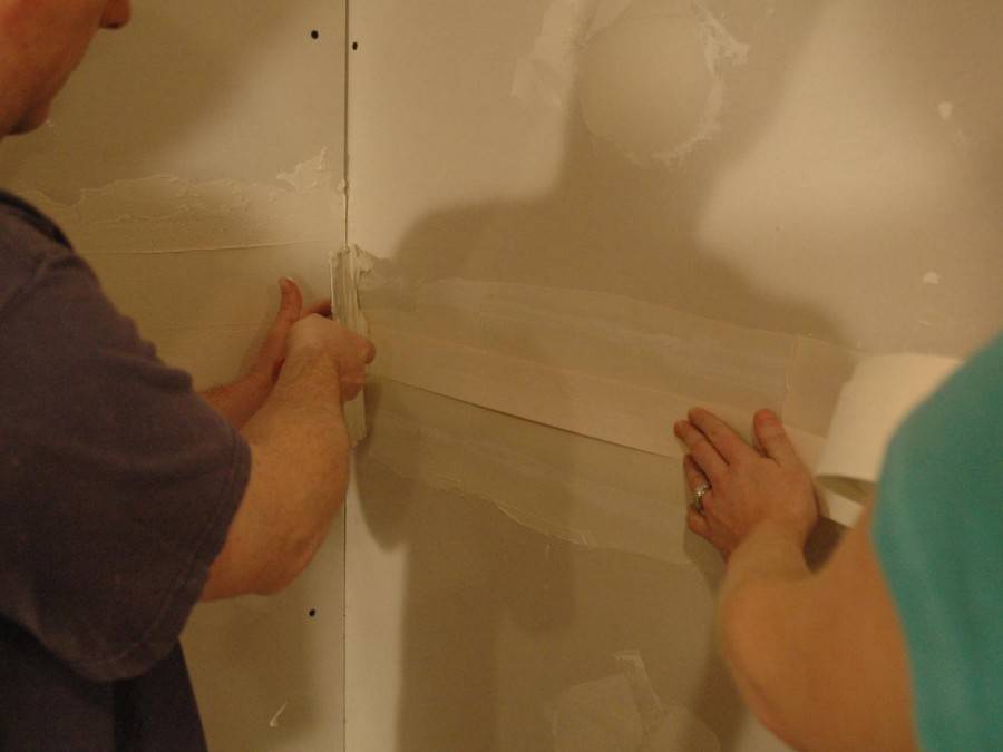 - нанести шпаклевку, обязательно применить армирующую ленту;