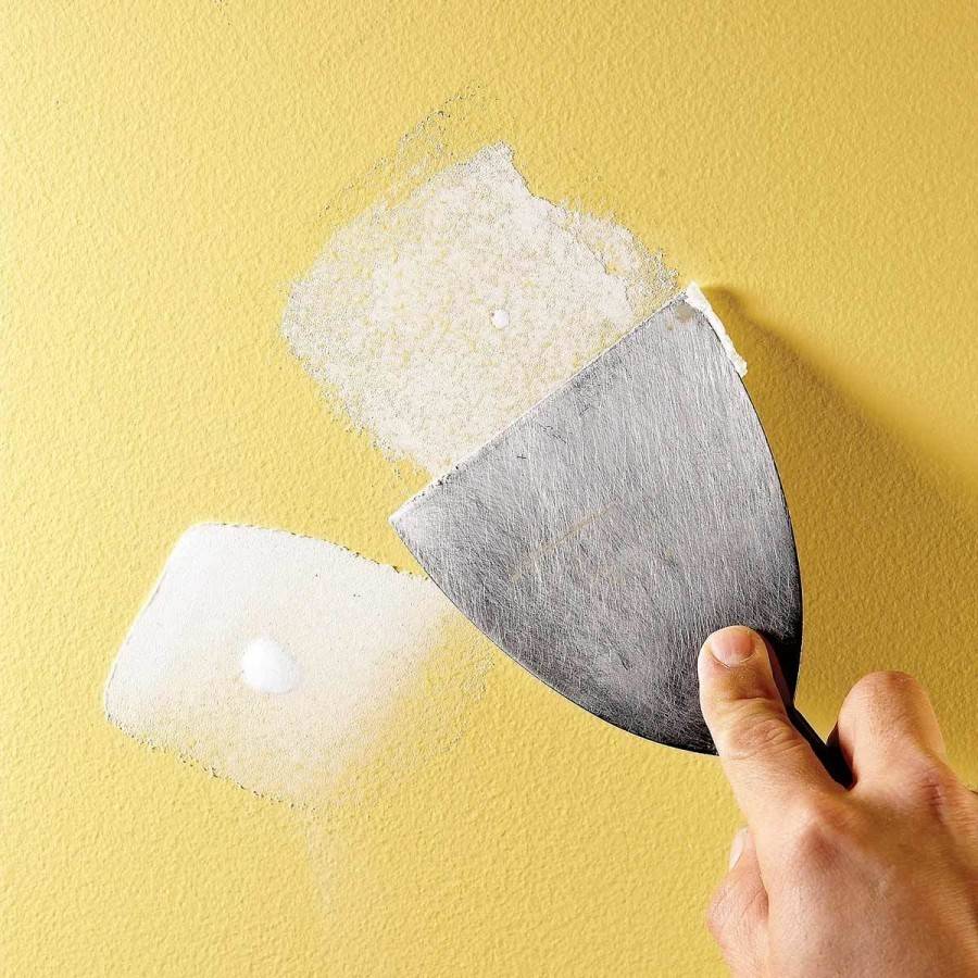 - Шпатлевание проводится путем нанесения смеси на поверхность. После высыхания возможно проявятся мелкие дефекты, которые скроют обои.