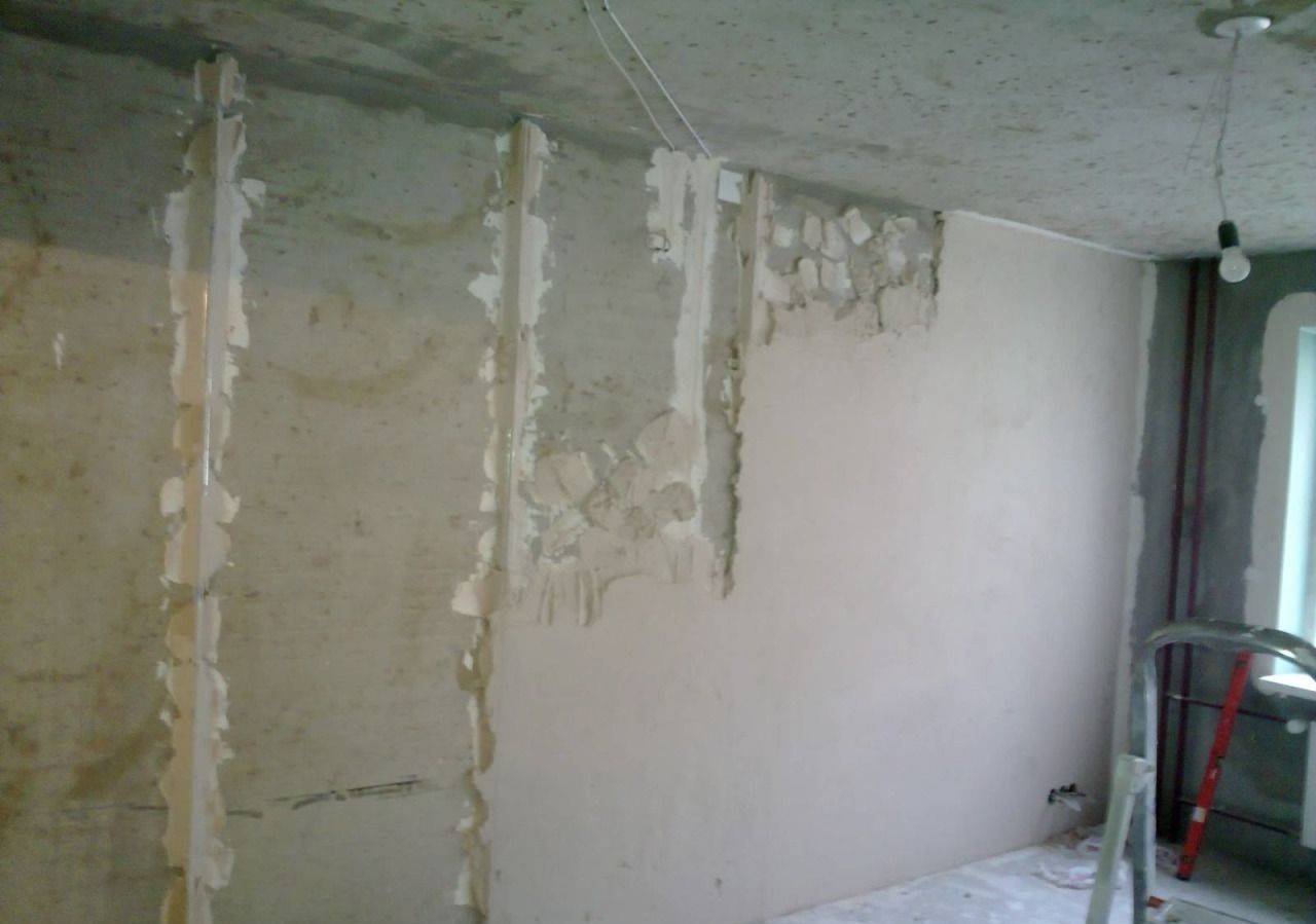 Использование реек и крепежных материалов запрещено, если основание не было подготовлено. Со стен нужно убрать все лишнее: