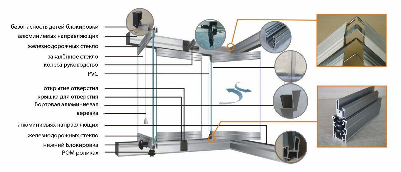 Отличия могут крыться еще в характеристиках стеклопакета и в системе открывания створок. Кроме того, сделать систему более функциональной можно при помощи разного рода аксессуаров.