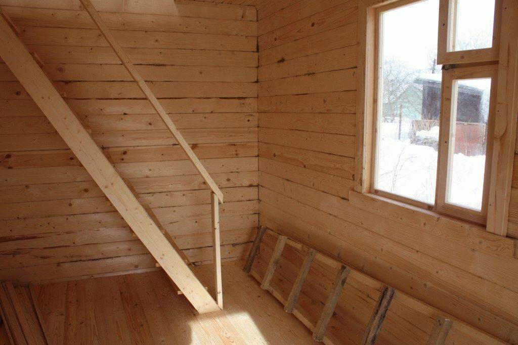 Пол желательно возводить в два этапа, в первую очередь укладывают черновой пол, пароизоляцию, помещают теплоизоляционный материалзатем, затем половую доску. Если планируется проживать в данном доме в зимнее время, то лучше выбирать доску не менее 36 мм. Точно таким же образом производится установка полов на втором этаже. Черновой пол создается с использованием обрезной доски.