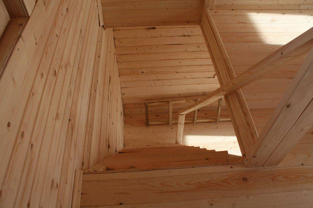 Последним этапам в строительстве деревянного дома является внешняя и внутренняя отделка дома. Отделочные работы следует проводить после того, как дом усядется, если в процессе строительства использовался, сырой материл, то необходимо подождать полтора года. В процессе внутренней отделки устанавливаются межкомнатные перегородки, оконные рамы, дверные коробки и лестница, ведущая на второй этаж