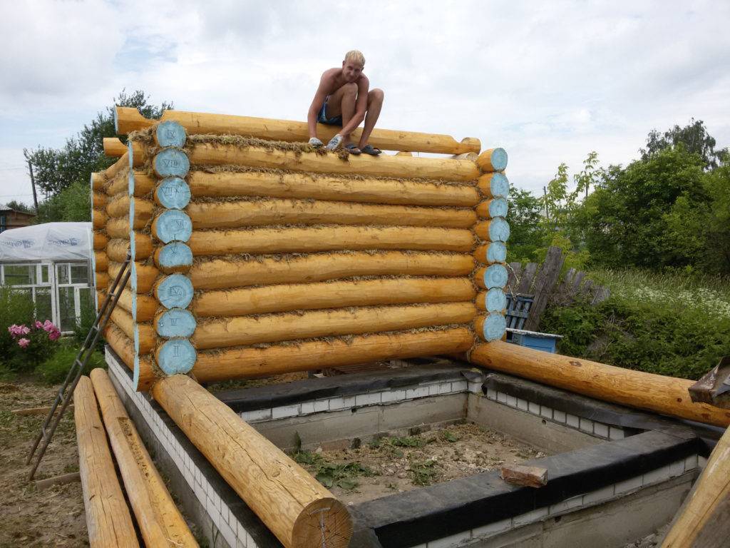Строительство русских бань своими руками возможно из любых материалов. Самыми лучшими решениями издревле считаются брус или бревно. Они используются в строительстве бань очень часто, так как в помещении обеспечивается идеальный микроклимат, а естественность древесины лишний раз подчеркивает гармоничность всех строений. Нужно выбирать бревна одного диаметра. Шлифовка играет важную роль для достижения гармоничного облика строения. Устойчивость соединения обеспечивается шипами, которые углубляются в материал на 2-3 см.